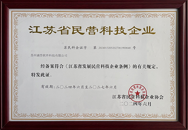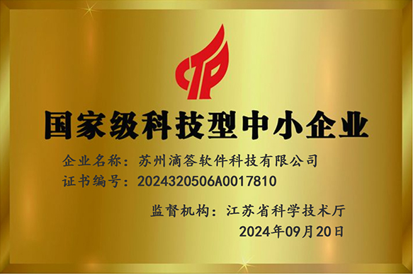 苏州滴答软件科技有限公司是国家级科技型中小企业,和民营科技企业!您值得信赖的合作伙伴!